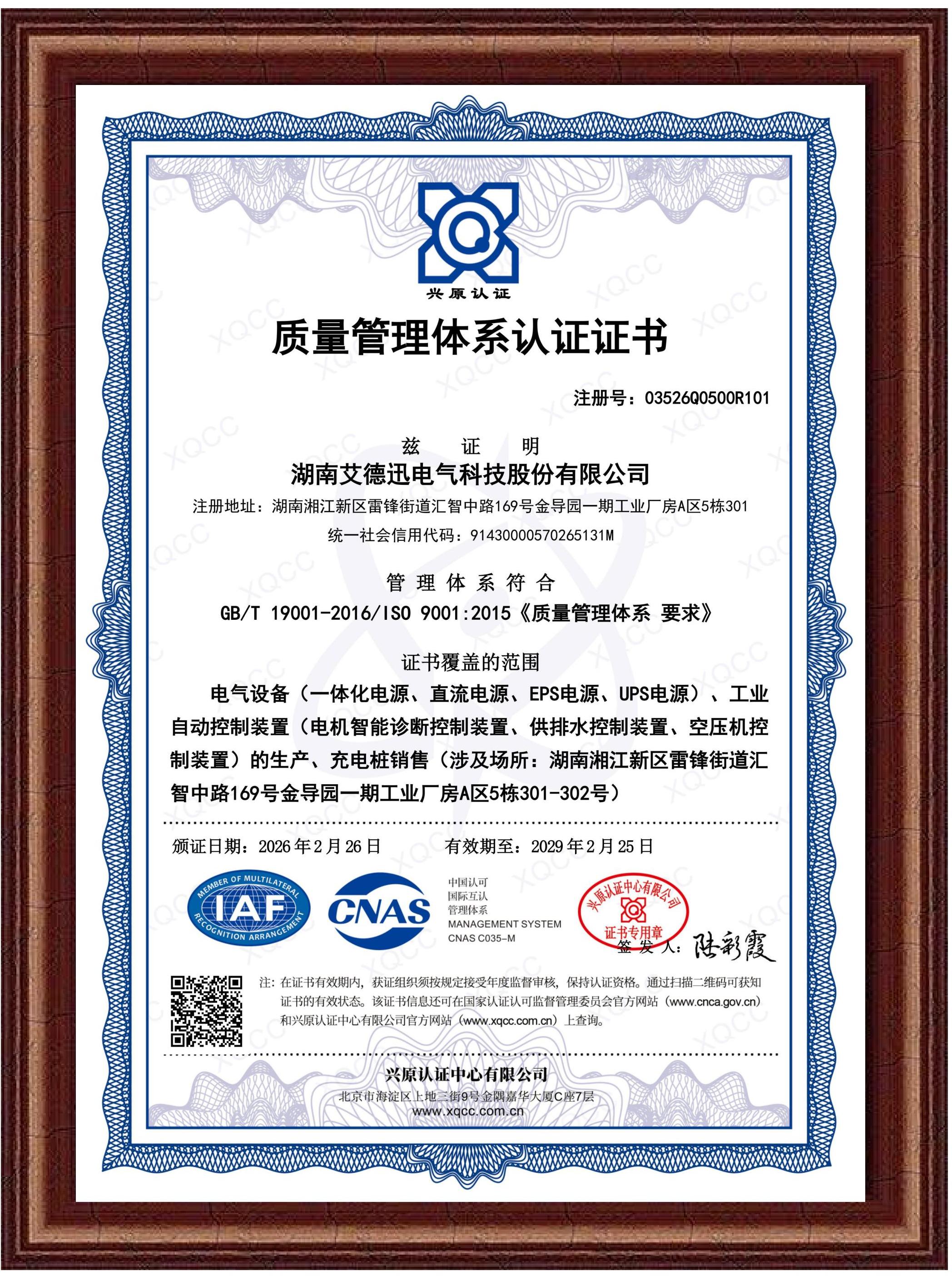 质量管理体系认证证书